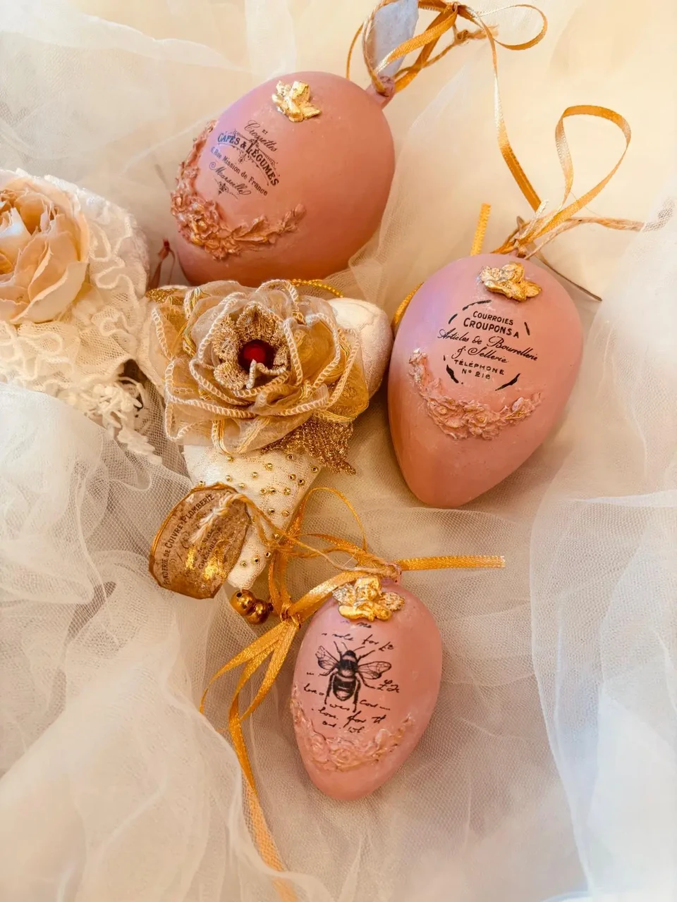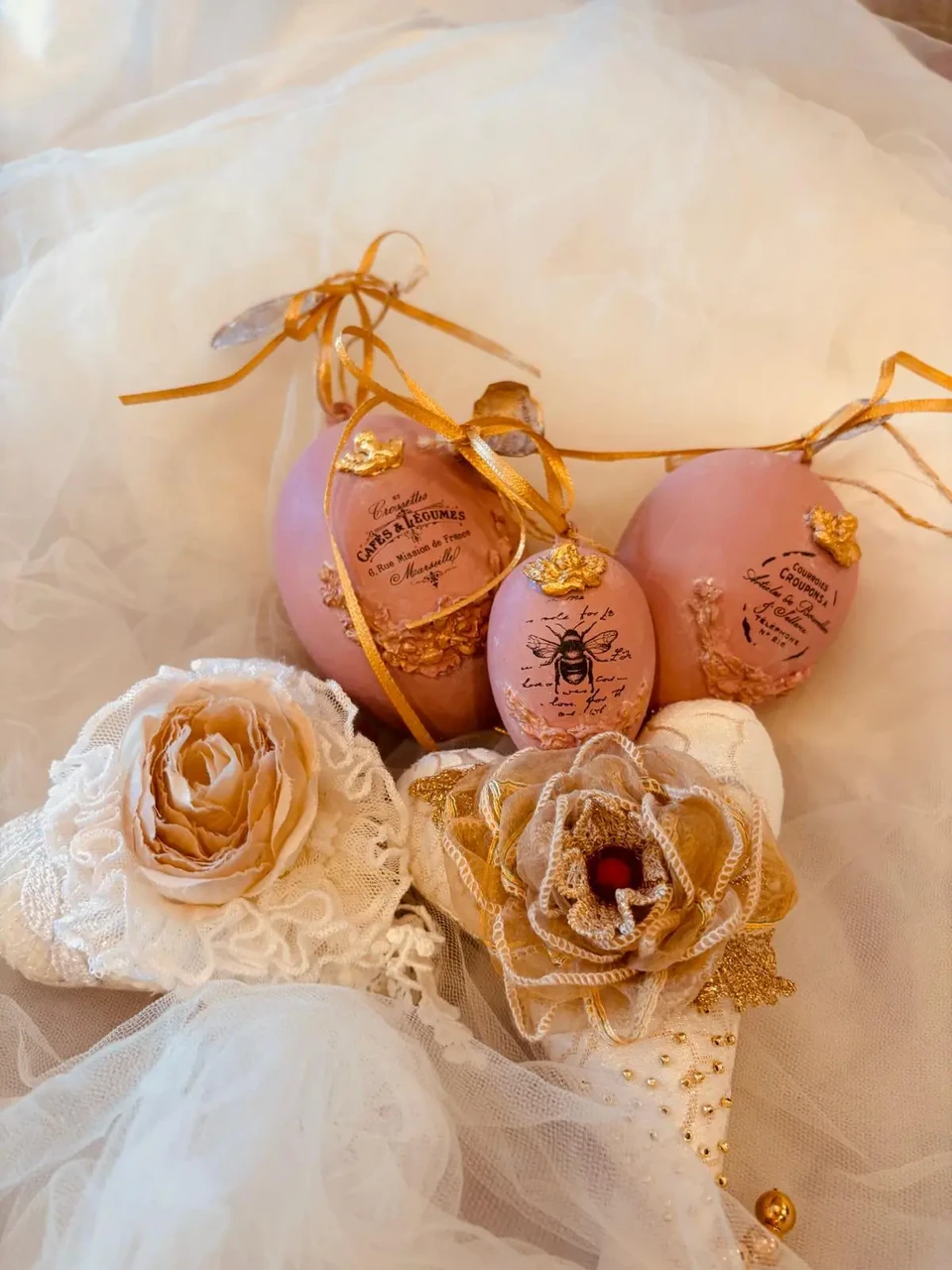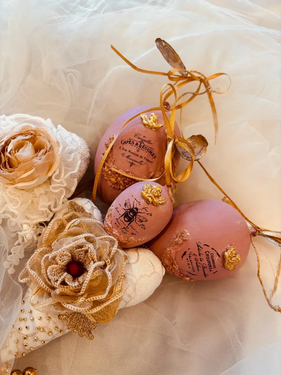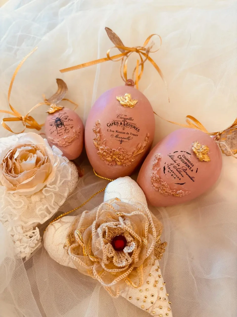 Komplektis 3 tk erinevas suuruses vanaroosat muna.