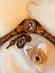 Materjal: kriidivärv, vaha, kahekomponentne vaik, puit. Kõik kaunistused ja raam on kahekomponentsest vaigust. Puidust sildike ja kahekomponentsest vaigust jõuluaunistused tulevad kaasa. Riidepuu mõõdud on 45x23 cm.